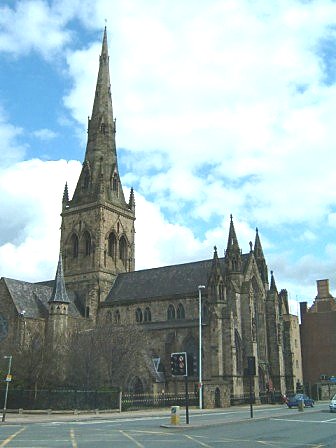 Begun in 1844, "the first Catholic church to be built in cruciform shape since the Reformation". The spire was modelled on that of St Mary Magdalen, Newark. Very attractive, simple interior. A warm welcome from the assistant priest and parish sister. Magnificent Easter Garden, almost lifesize. East window shows scenes from the history of the Church in England, including a portly King Henry VIII - hardly a hero to Catholics. Next frame shows a noose hanging over someone's head - not sure whose...
