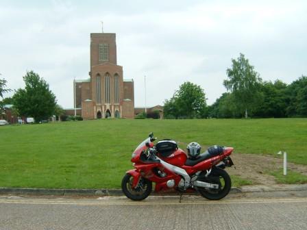 An unplanned visit on the way home after trip to Sussex. Managed to meet up with university friend, now Guildford Diocesan Director of Ordinands, for lunch. Thanks, William! Even if you did call me a middle aged man on an oversized bike... (Jealousy, I call it.) Wanted to see a "testimonial on vellum signed by the Dean in person to record your visit" but will have to make do with the photo like everyone else. Modern cathedral - construction began before WW2, then resumed 1952 and completed 1961. "First Anglican cathedral to be built on a new site in the south of England since the Reformation." Quite stark yet attractive in its simplicity. Away from city centre (though next to University) so not a place people drop into casually.