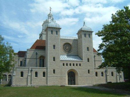 Curious! Central tower creates major blockage between nave and quire - somehow more so than the screens found in most medieval former abbey churches. Nave was rebuilt 1930-92, wide but short, to enlarge the building for new cathedral status given in 1927. Maureen came with me (by car!); we knew there was a Mothers' Union service late morning so we came after it, only to find all the MU members still there for lunch & an afternoon session. Maureen greeted by Diocesan President and by Worldwide President, both of whom she knew; what must other members have thought when leather-clad biker appears, accompanied by wife who hob-nobs with their leader & visiting speaker, & they promptly join the lunch-queue?!