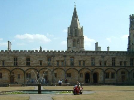 A very exciting visit for me. Cathedral doubles as college chapel for Christ Church, where I used to attend lectures. Authorities said I could ride my bike into "Tom Quad" - quadrangle entered through (Tudor) Tom Tower with cathedral opposite - for pic. (I never did anything half so adventurous as an undergraduate!) Greeted warmly by bowler-hatted porters, and house manager came to have a look at the bike too! Found a classic "oddity" in the cathedral - but you'll have to come to a slide show to find out what it is. Before it became a cathedral (1542 again) it had been a convent and then a priory church. Unusually small, because Cardinal Wolsey demolished 3 western bays of nave to make room for Tom Quad when he founded Christ Church (then called Cardinal's College) in 1525. But makes no claim to be the smallest in England, so perhaps either Carlisle or Derby has that distinction after all?